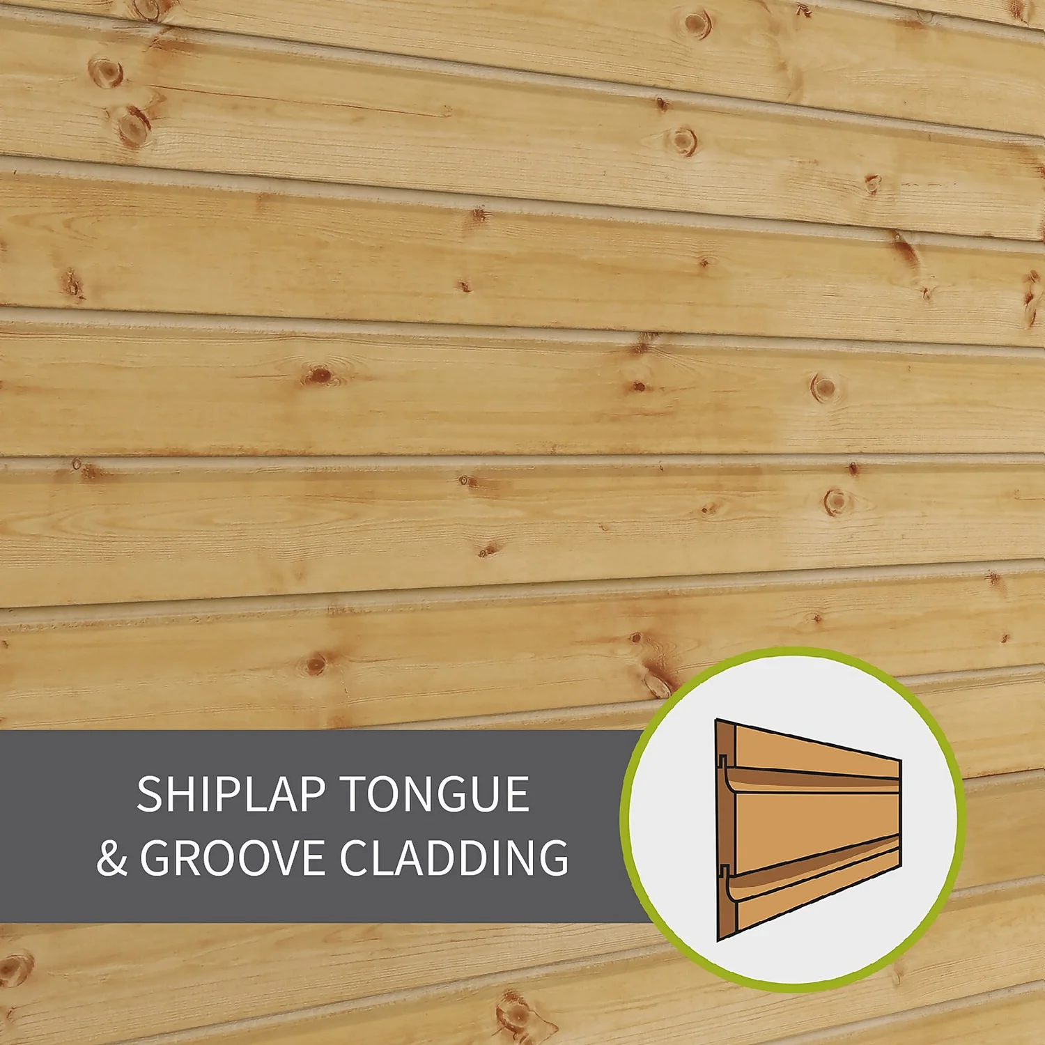 - Shiplap Cladding – Interlocking tongue and groove boards feature a protective lip to offer a strong, premium and weatherproof panel